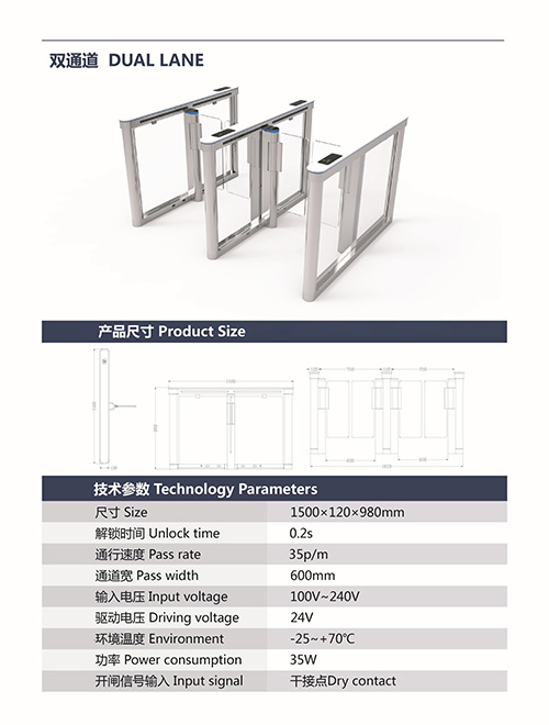 1.速通門B307系統(tǒng)具備防撞功能,當(dāng)有外物在未授權(quán)的狀態(tài)下撞擊擺桿,擺桿運(yùn)動(dòng)角度達(dá)到菜單設(shè)定的值(如 2°),控制器_會(huì)啟動(dòng)剎車機(jī)構(gòu),阻止擺桿運(yùn)動(dòng),并啟動(dòng)聲光報(bào)警。當(dāng)外力進(jìn)一步增大,剎車控制器會(huì)保護(hù)擺桿不被撞斷,外力撤除后,擺桿自動(dòng)歸位,系統(tǒng)正常; 2.速通門B307統(tǒng)具備角度分辨和零位自檢功能,包含 500P/R 編碼器,分辨精度高,這種高精度的傳感器的優(yōu)勢(shì)是使擺桿轉(zhuǎn)動(dòng)_; 3.非法進(jìn)入有報(bào)警提示功能; 4.防沖功能,在沒(méi)有接收功能開閘信號(hào),擺臂自動(dòng)鎖死; 5.紅外防夾功能,在擺臂復(fù)位的過(guò)程中紅外檢測(cè)到人在通道中,擺臂會(huì)自動(dòng)回到打開狀態(tài); 6.統(tǒng)一標(biāo)準(zhǔn)的對(duì)外電氣接口,可與多種讀卡器相掛接,并可通過(guò)管理計(jì)算機(jī)實(shí)現(xiàn)遠(yuǎn)程控制與管理; 7.速通門B307系統(tǒng)設(shè)有過(guò)流保護(hù)裝置,當(dāng)負(fù)載_過(guò)某設(shè)定值(如 2._),系統(tǒng)停止工作,以免燒壞電機(jī)等設(shè)備;
